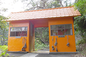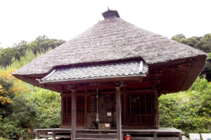 客殿、斎場より少し上ったところに建つ薬師堂は周囲の景色とも相まって趣のある姿です。静岡県指定文化財です。詳細は”文化財と仏様”に記載。